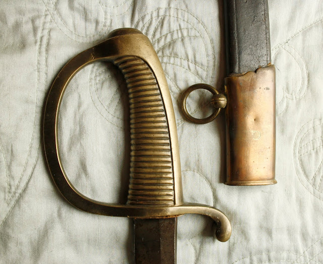 Minusta miekka näytti nopean tarkastelun perusteella 1800- luvun jalkaväen tai tykistön lyhyeltä sapelilta. En kuitenkaan ollut tästä aivan varma.